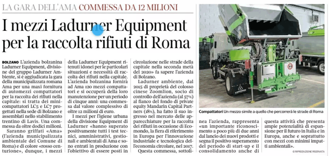 ▲意大利媒体有关罗马环卫装备采购项目中标报道