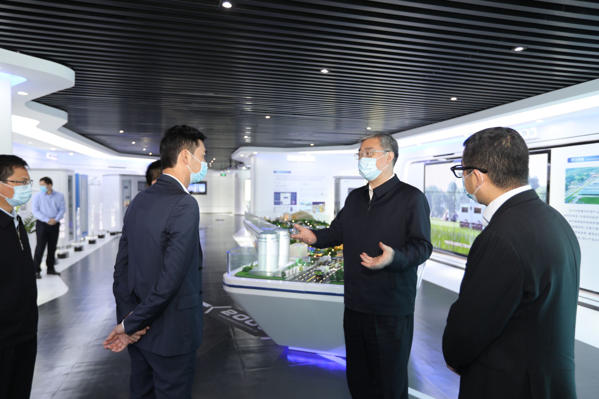 2月25日上午,佛山市市委书记鲁毅来到易倍emc环境,就进一步做好企业复工复产及疫情防控工作进行调研检查。市委副秘书长张朝志、顺德区区长彭聪恩陪同调研,易倍emc集团董事长兼总裁何剑锋、易倍emc环境董事长兼总裁马刚陪同介绍。