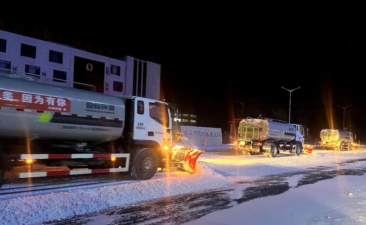 小雪、大雪、暴雪、雨夹雪,今年入冬,东北地区迎来了第一场大规模雨雪天气,并伴有寒潮、大风。为确保城市道路通行顺畅,保障城市生产和市民生活正常进行,易倍emc环境东北中心辽宁抚顺、沈河、辽阳等项目、黑龙江桦川项目、内蒙古准格尔项目以雪为令,打响今年冬天首场“保民生、保畅通、保安全”的冰雪保卫战,吹响“抗冰除雪”集结号。
